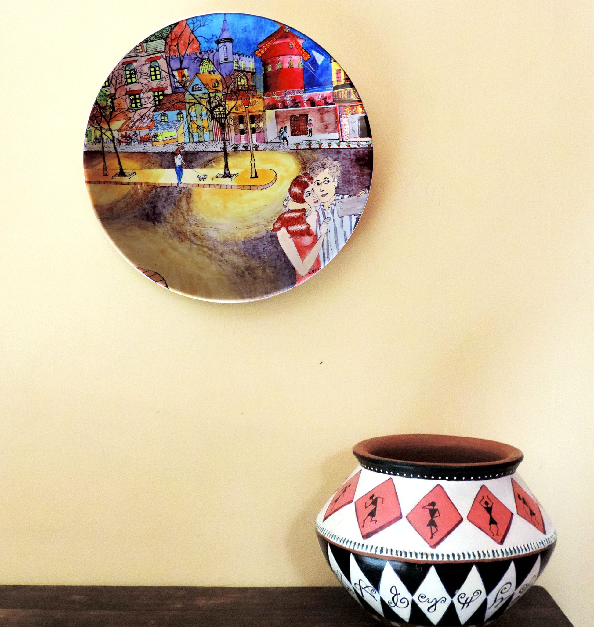 Style your interiors with this beautiful decorative plate, designed from unique original artwork. The plate comes with a stand for table décor, and a separate hanger for wall décor.