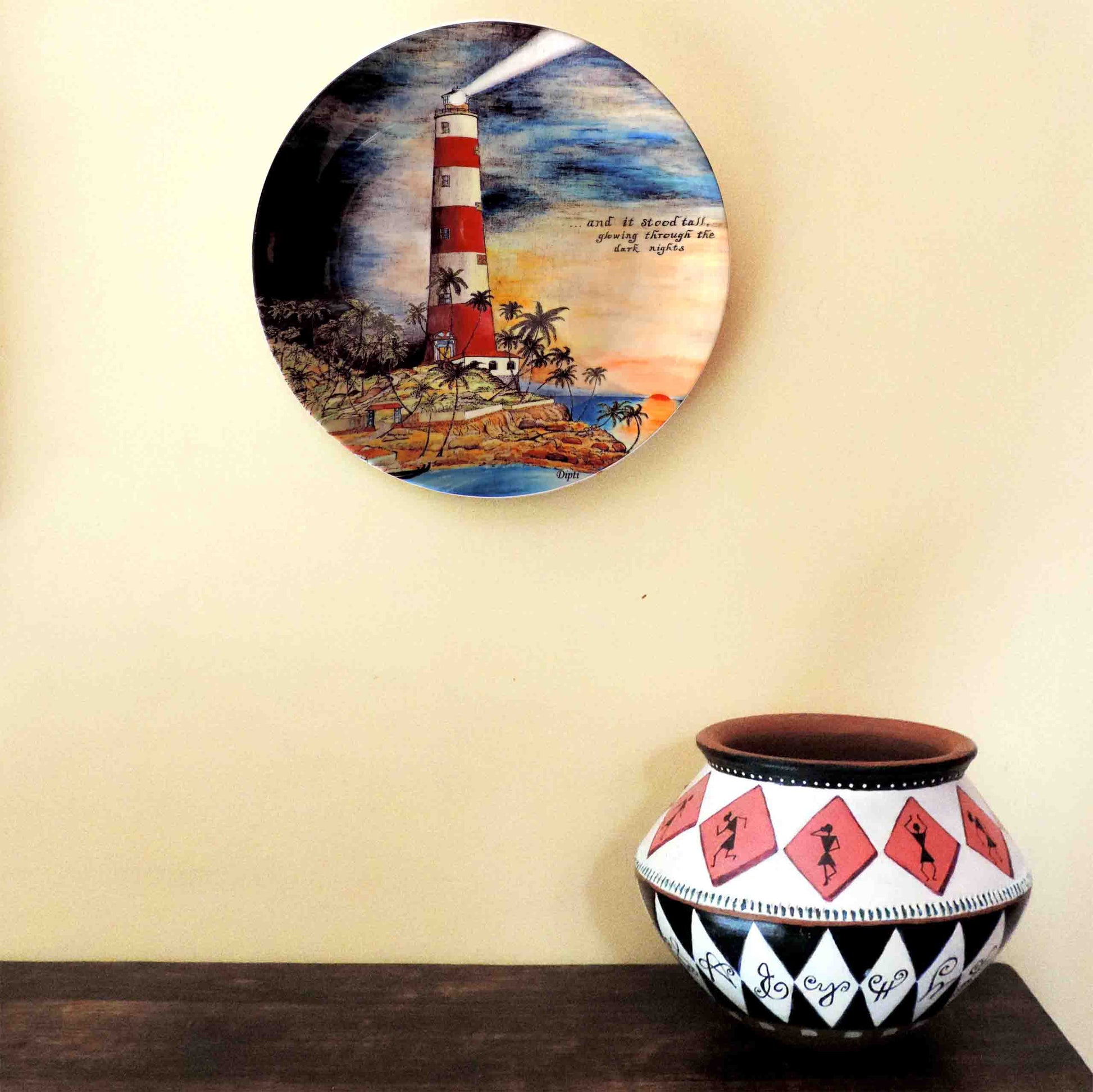 Style your interiors with this beautiful decorative plate, designed from unique original artwork. The plate comes with a stand for table décor, and a separate hanger for wall décor.