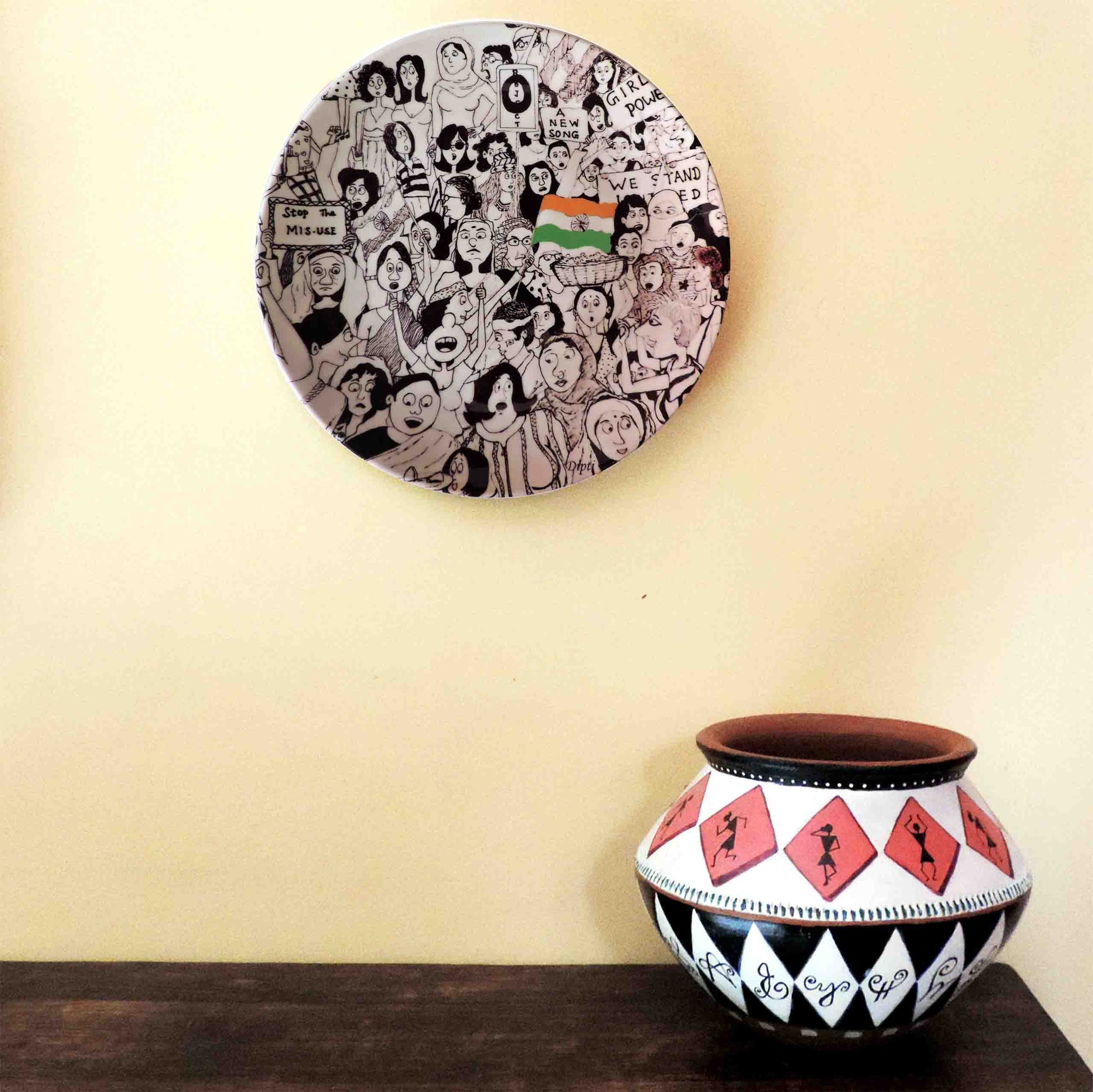 Style your interiors with this beautiful decorative plate, designed from unique original artwork. The plate comes with a stand for table décor, and a separate hanger for wall décor.