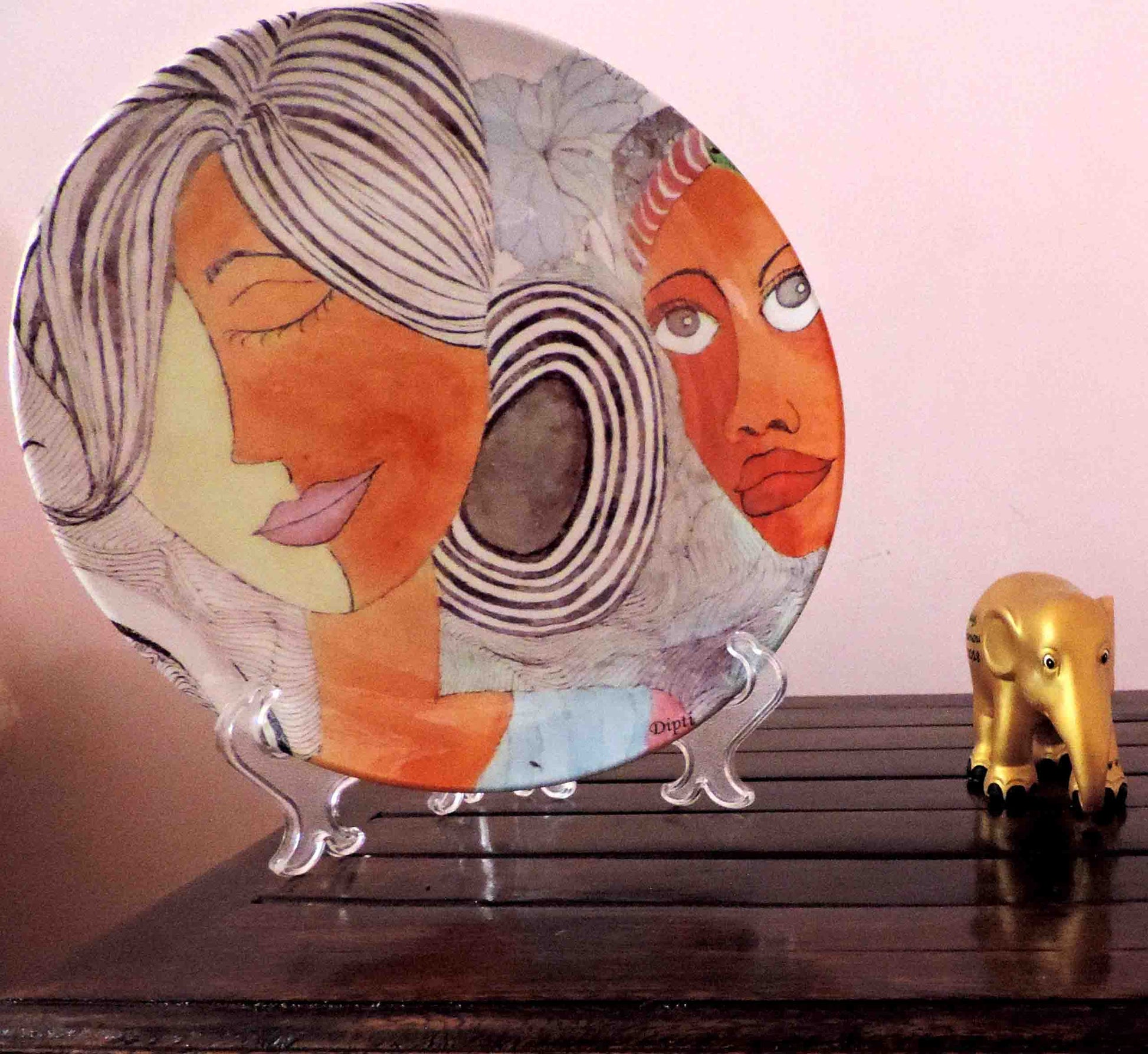 Style your interiors with this beautiful decorative plate, designed from unique original artwork. The plate comes with a stand for table décor, and a separate hanger for wall décor.