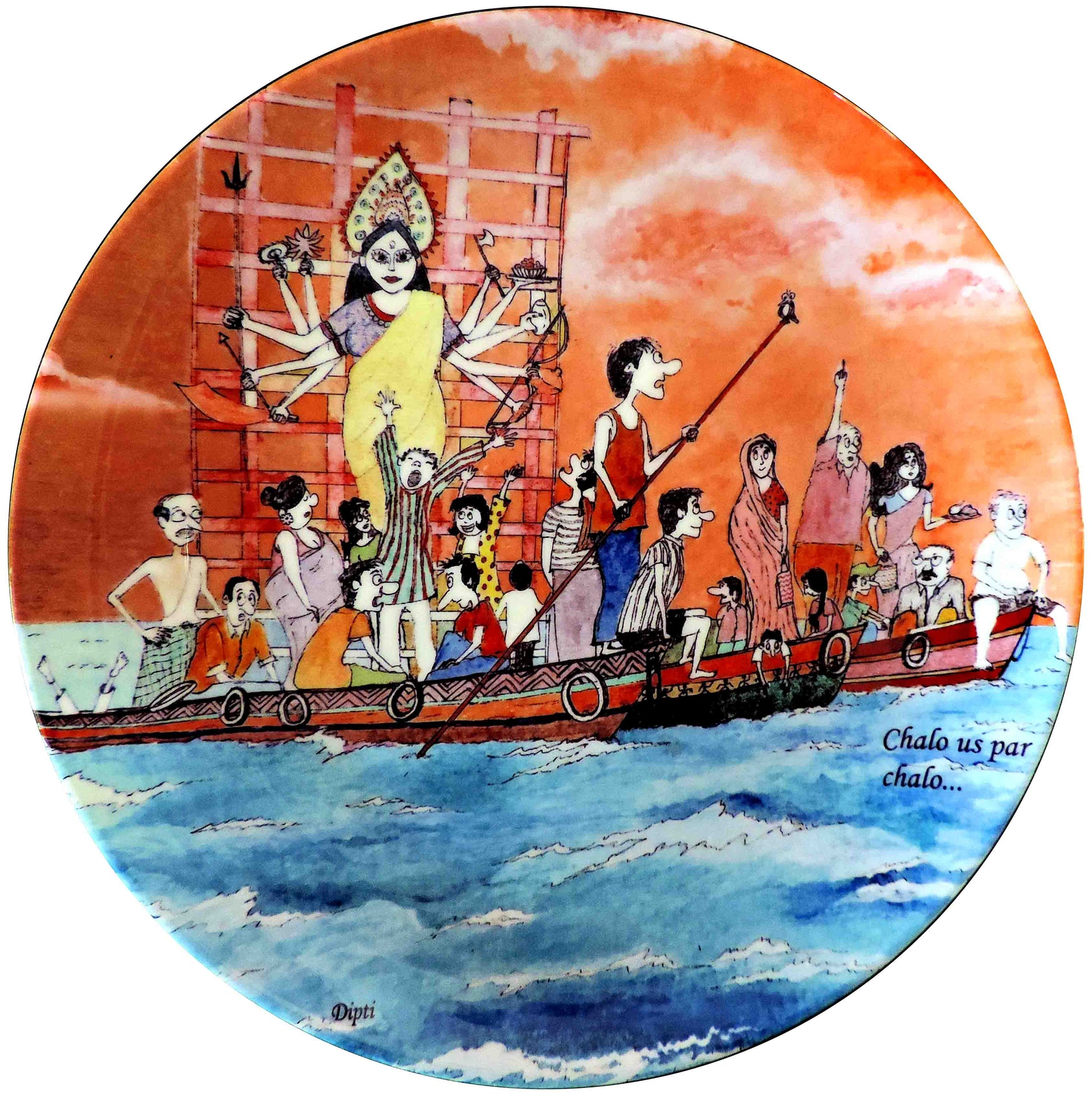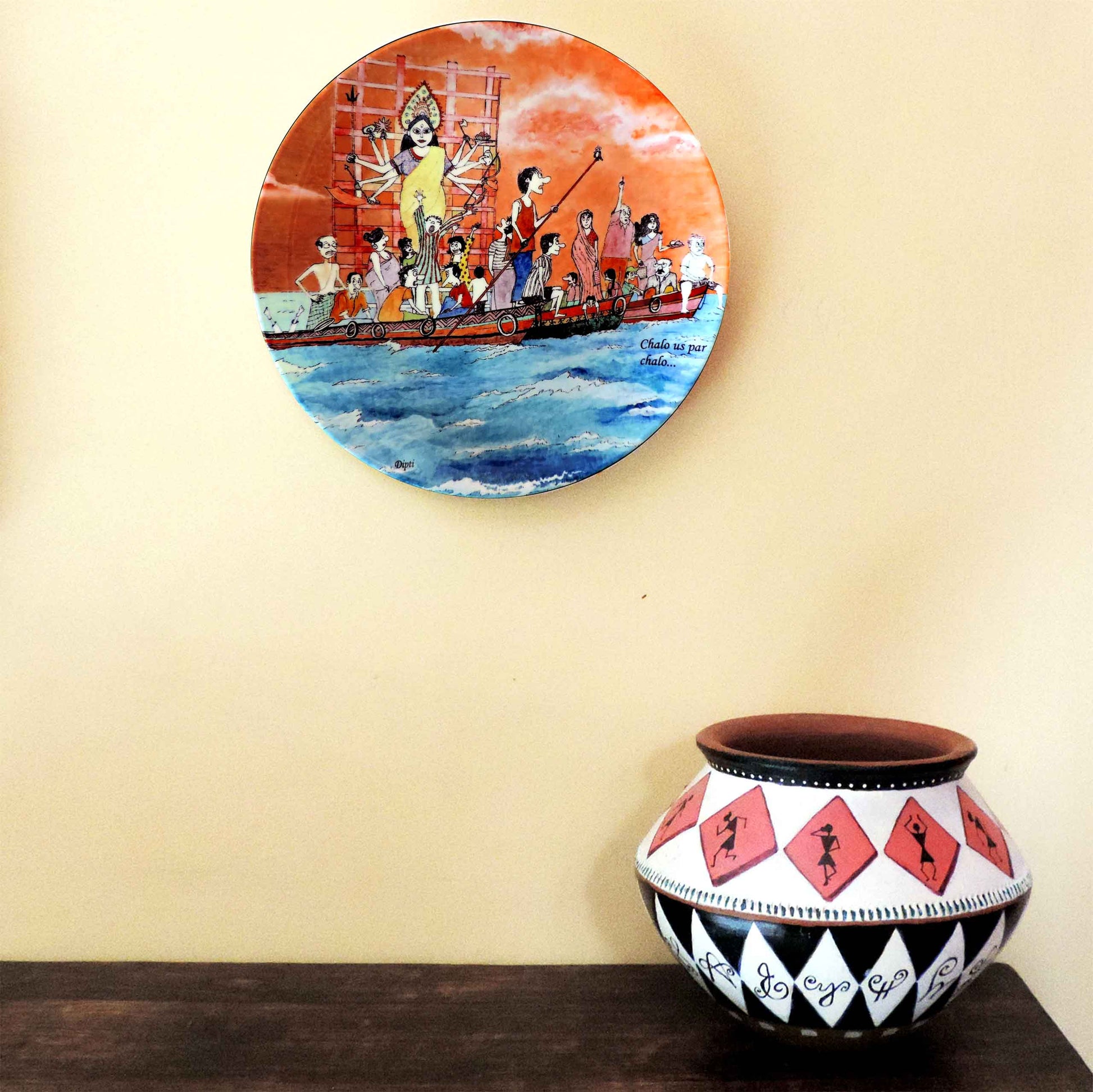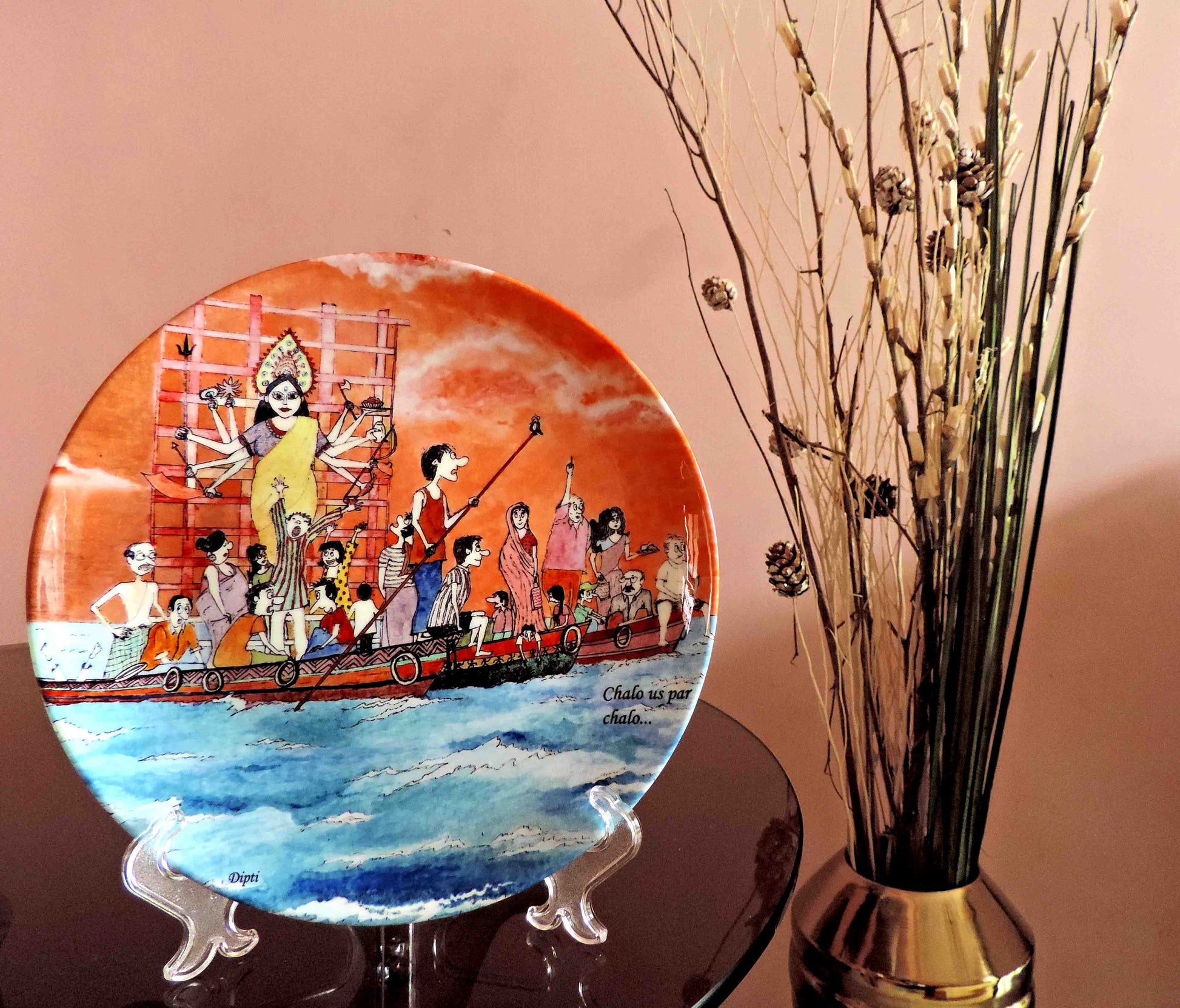 Style your interiors with this beautiful decorative plate, designed from unique original artwork. The plate comes with a stand for table décor, and a separate hanger for wall décor.