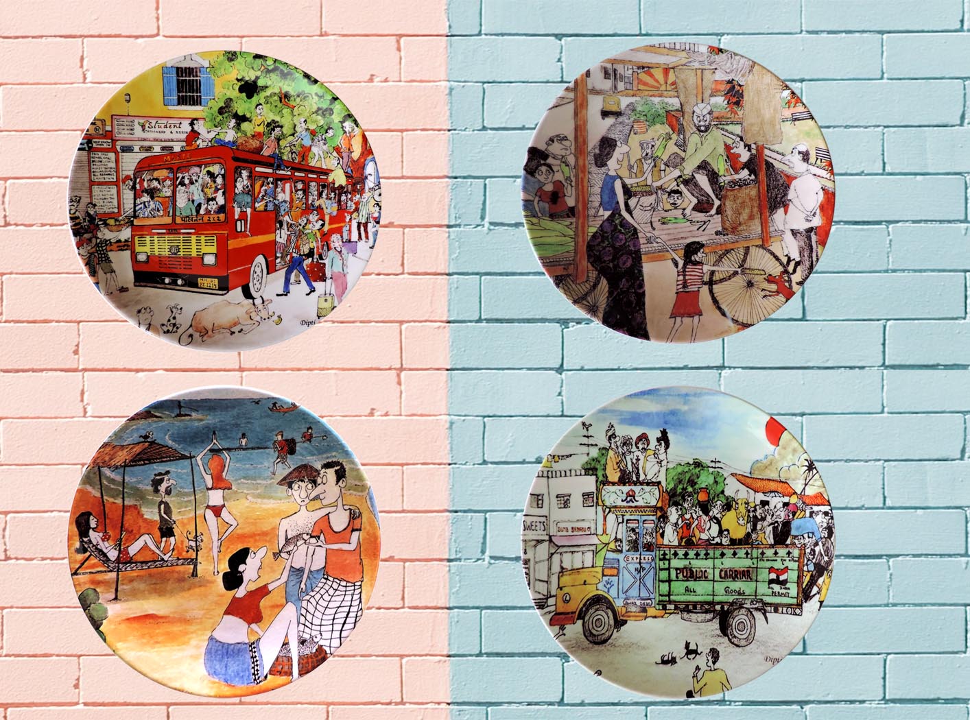 Style your interiors with this beautiful combo of decorative plates with print from unique original artwork. The plates come with wall hangers fixed to it.