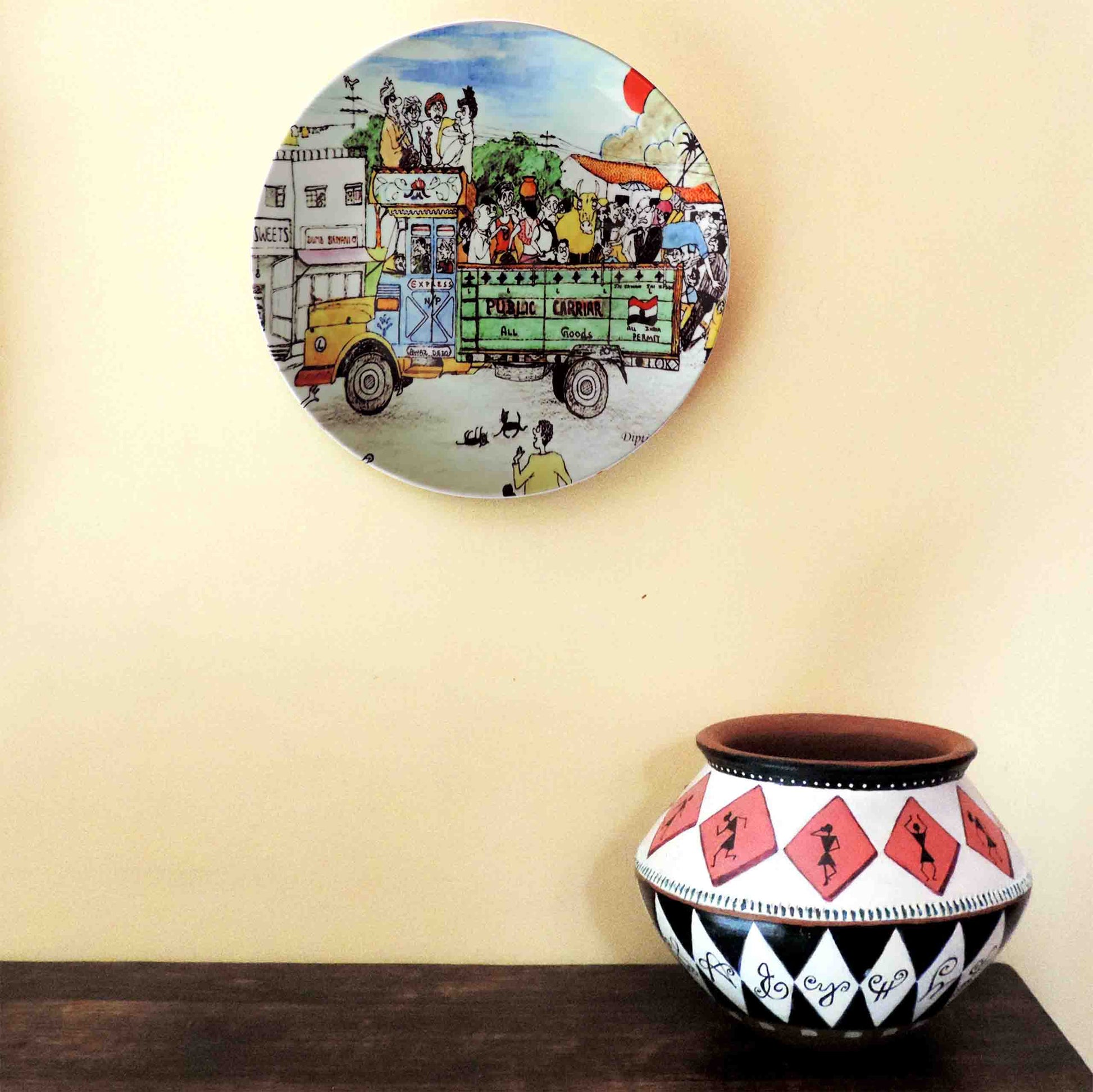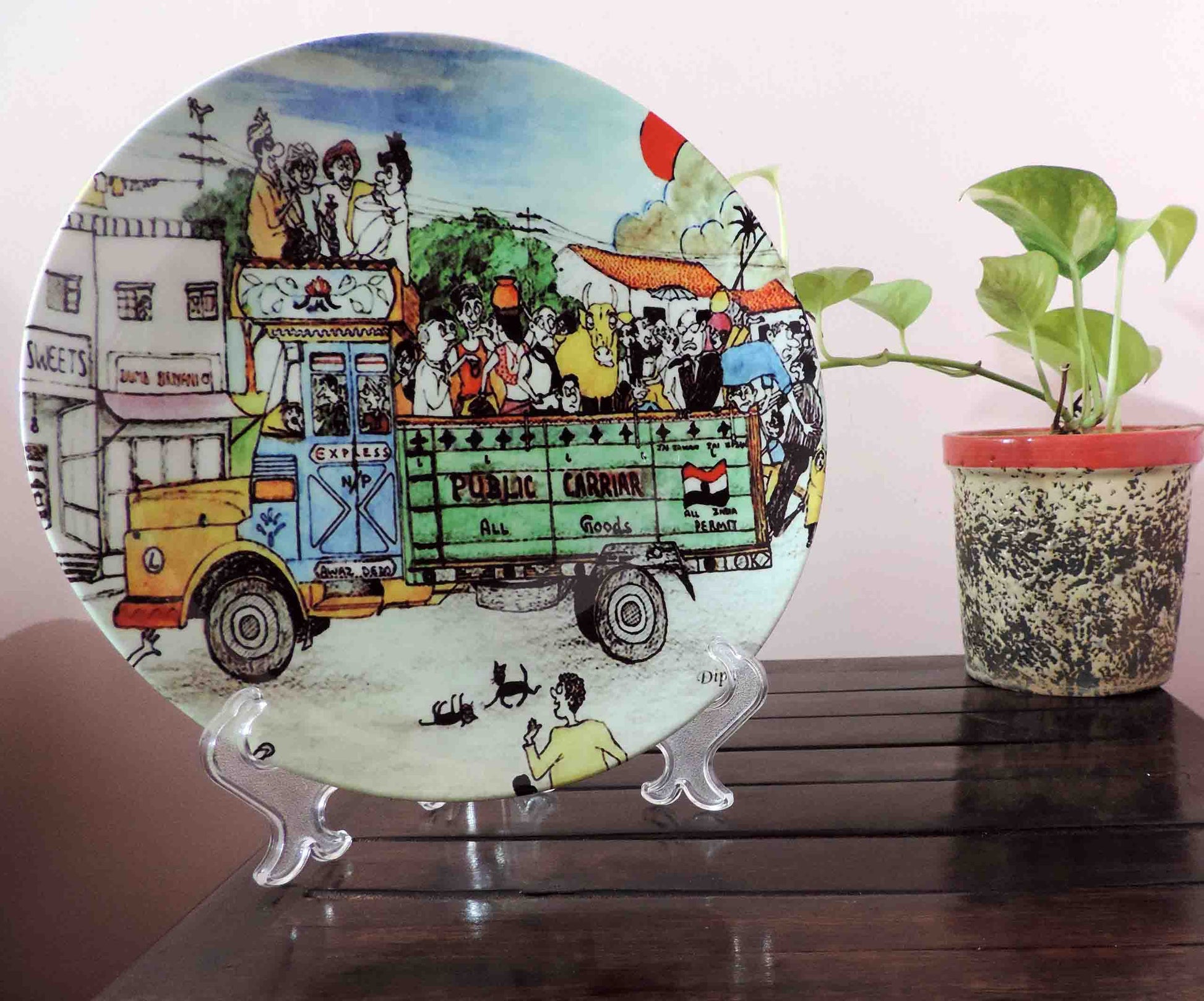 Style your interiors with this beautiful decorative plate, designed from unique original artwork. The plate comes with a stand for table décor, and a separate hanger for wall décor.
