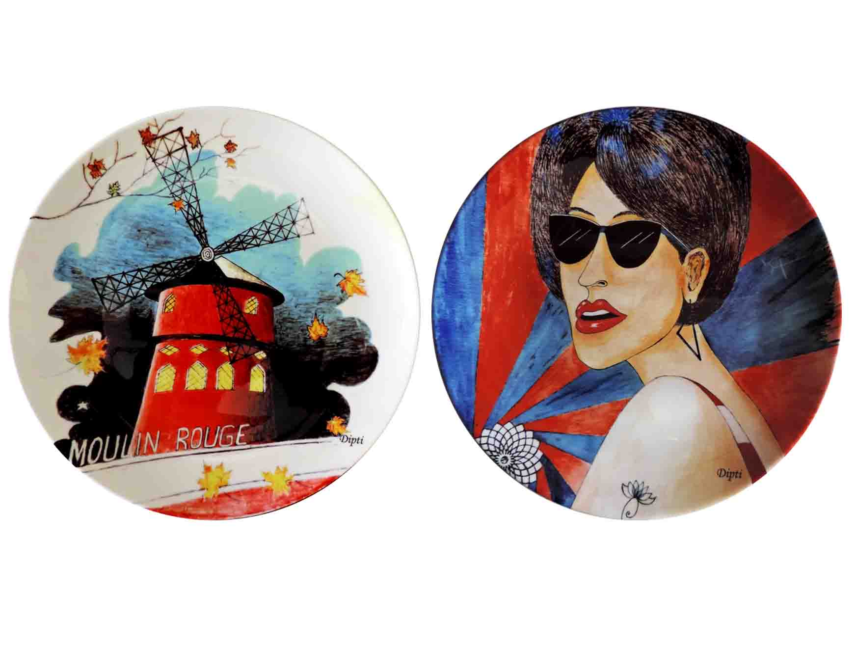 Style your interiors with this beautiful combo of decorative plates with print from unique original artwork. The plates come with wall hangers fixed to it.