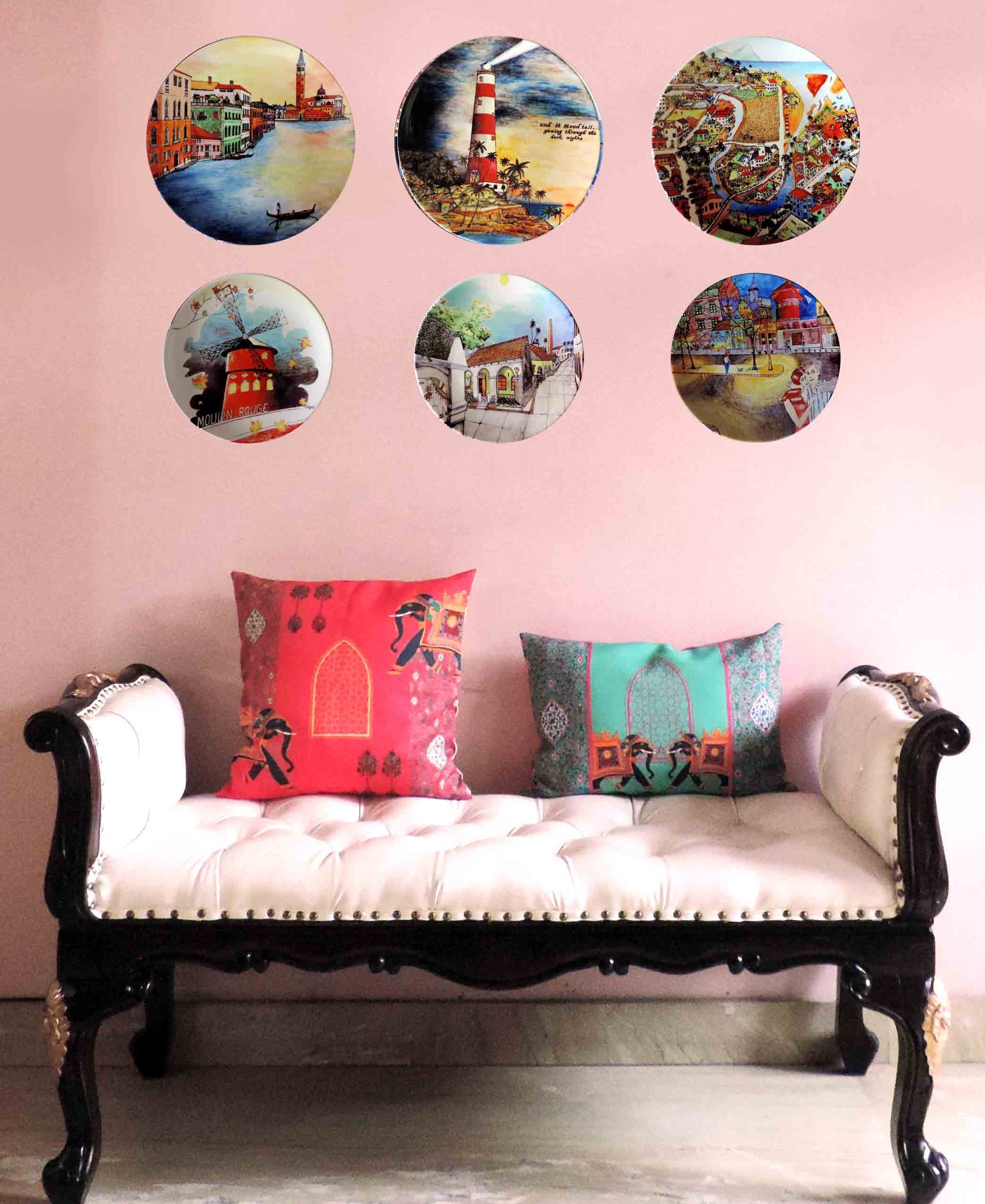 Style your interiors with this beautiful combo of decorative plates with print from unique original artwork. The plates come with wall hangers fixed to it.