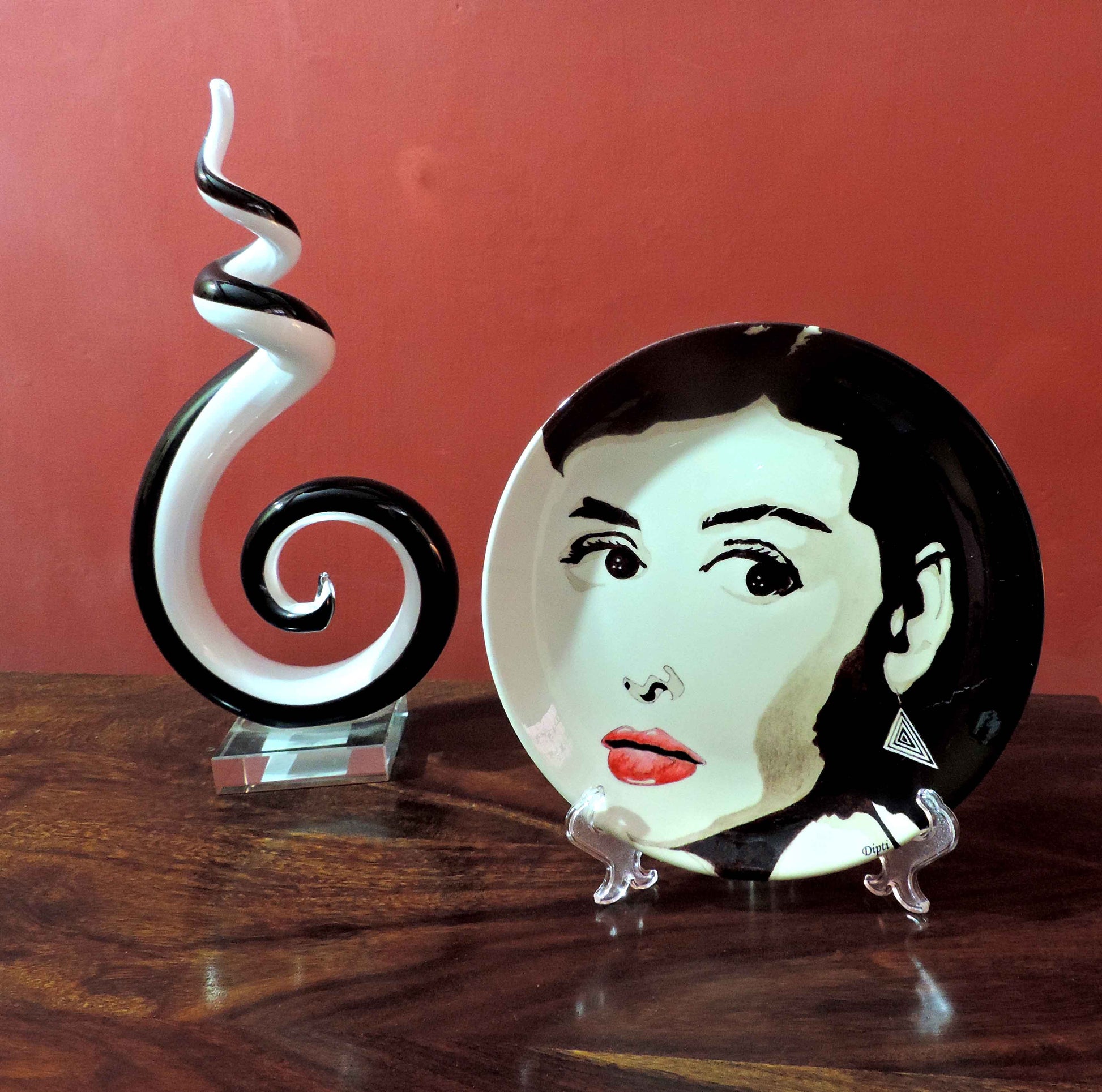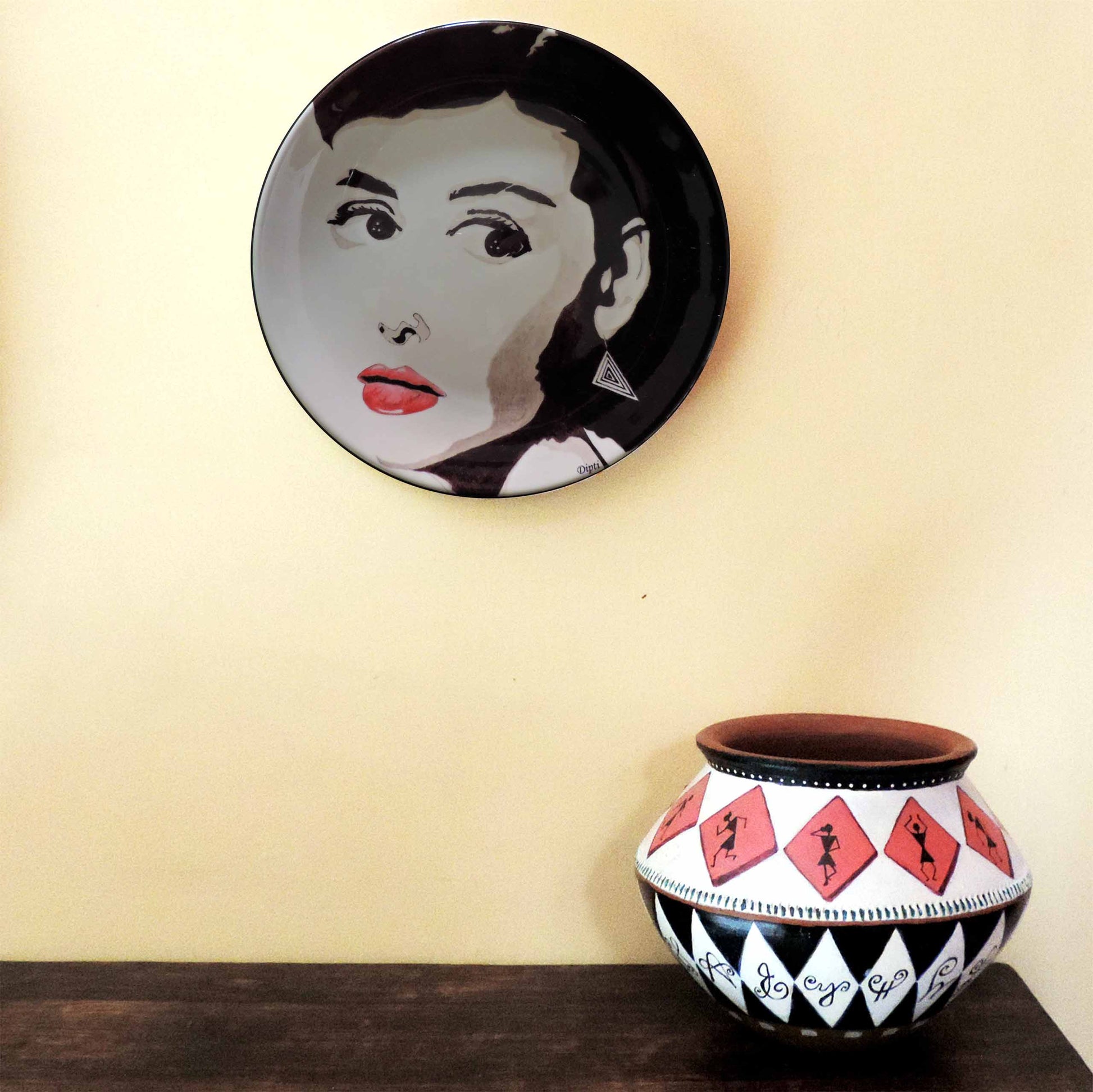 Style your interiors with this beautiful decorative plate, designed from unique original artwork. The plate comes with a stand for table décor, and a separate hanger for wall décor.