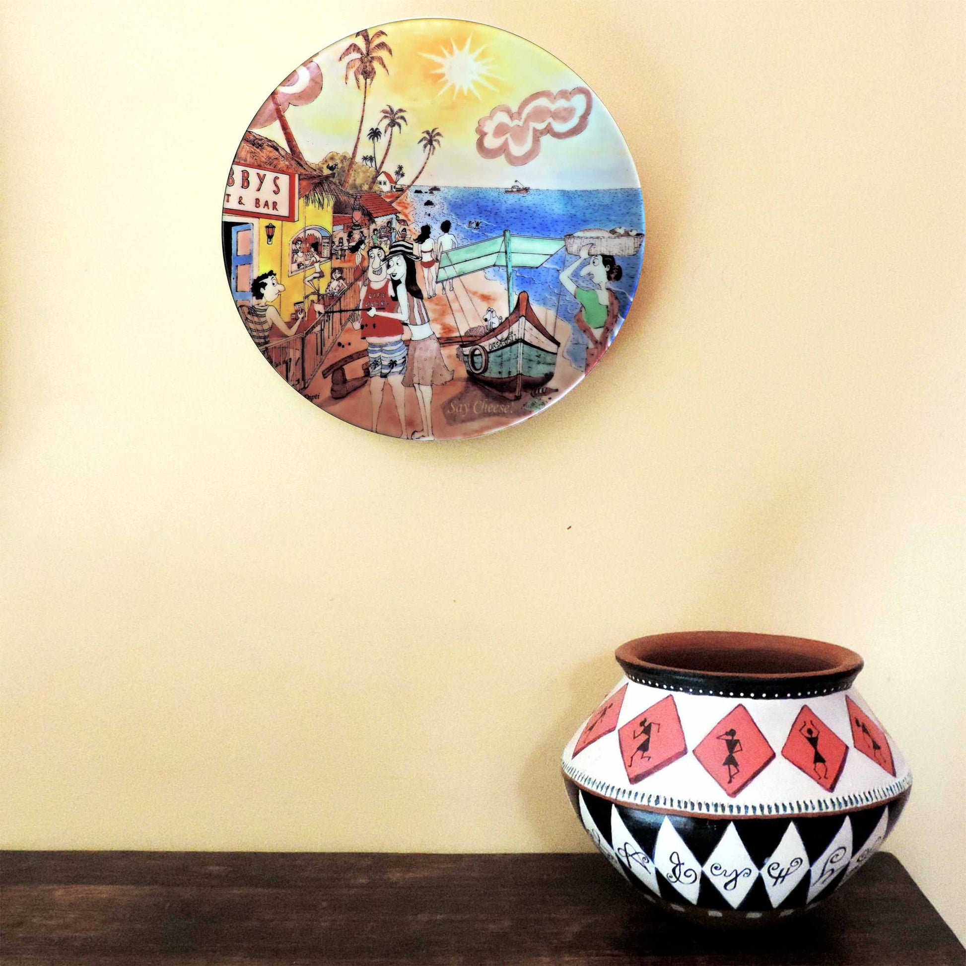 Style your interiors with this beautiful decorative plate, designed from unique original artwork. The plate comes with a stand for table décor, and a separate hanger for wall décor.