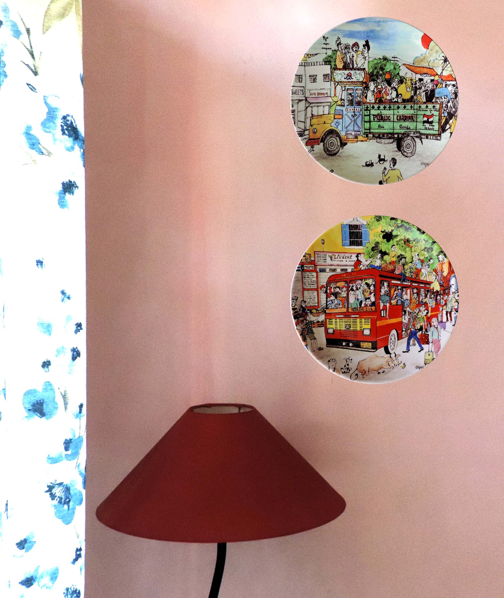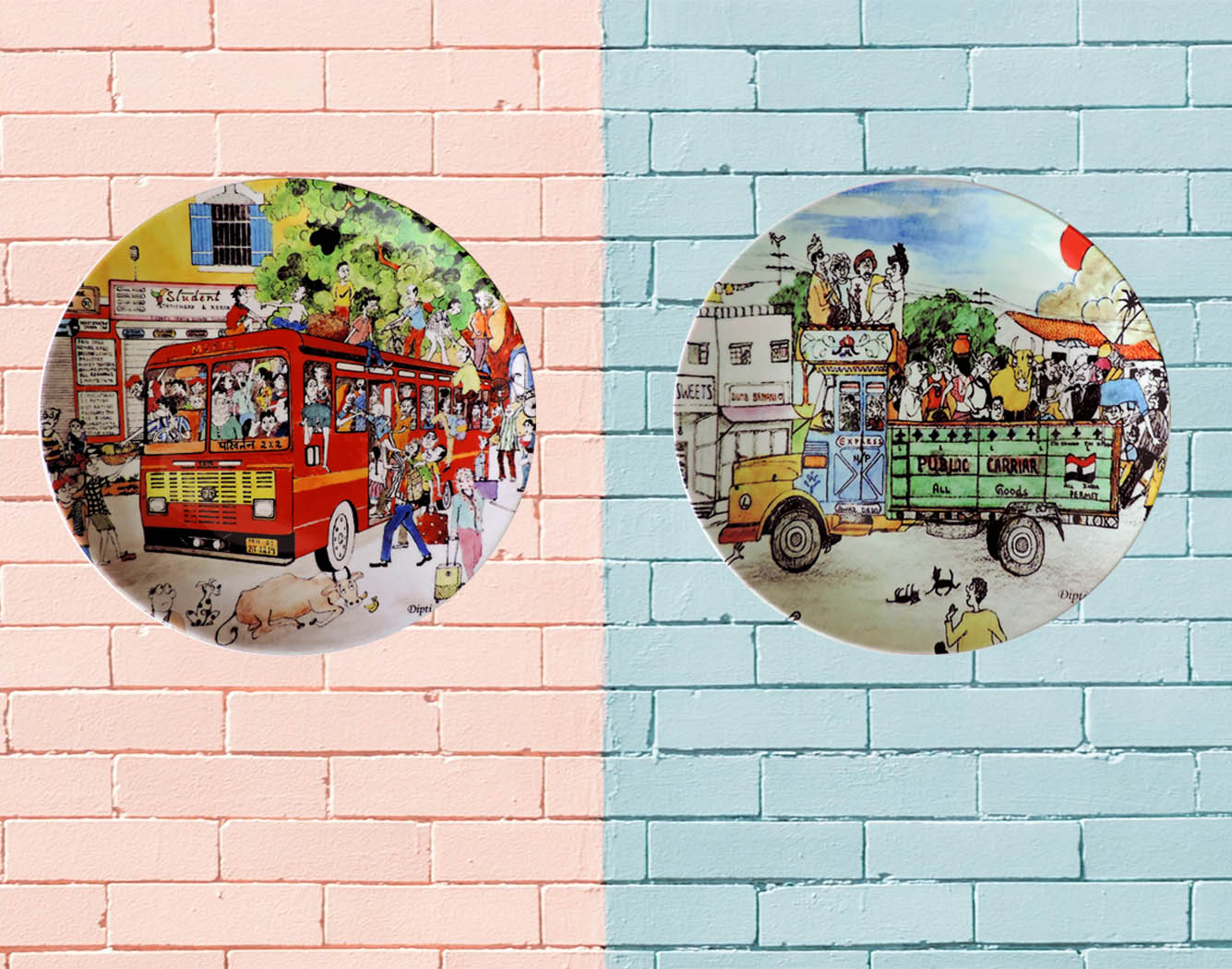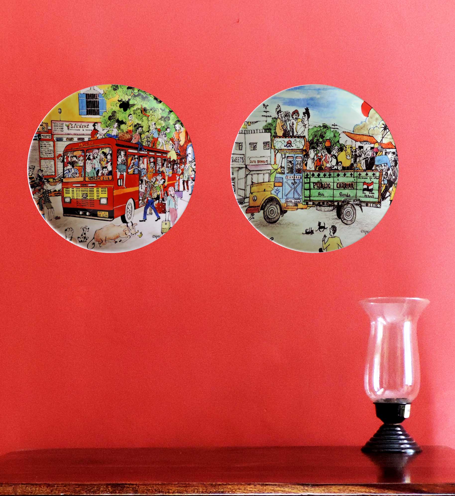 Style your interiors with this beautiful combo of decorative plates with print from unique original artwork. The plates come with wall hangers fixed to it.