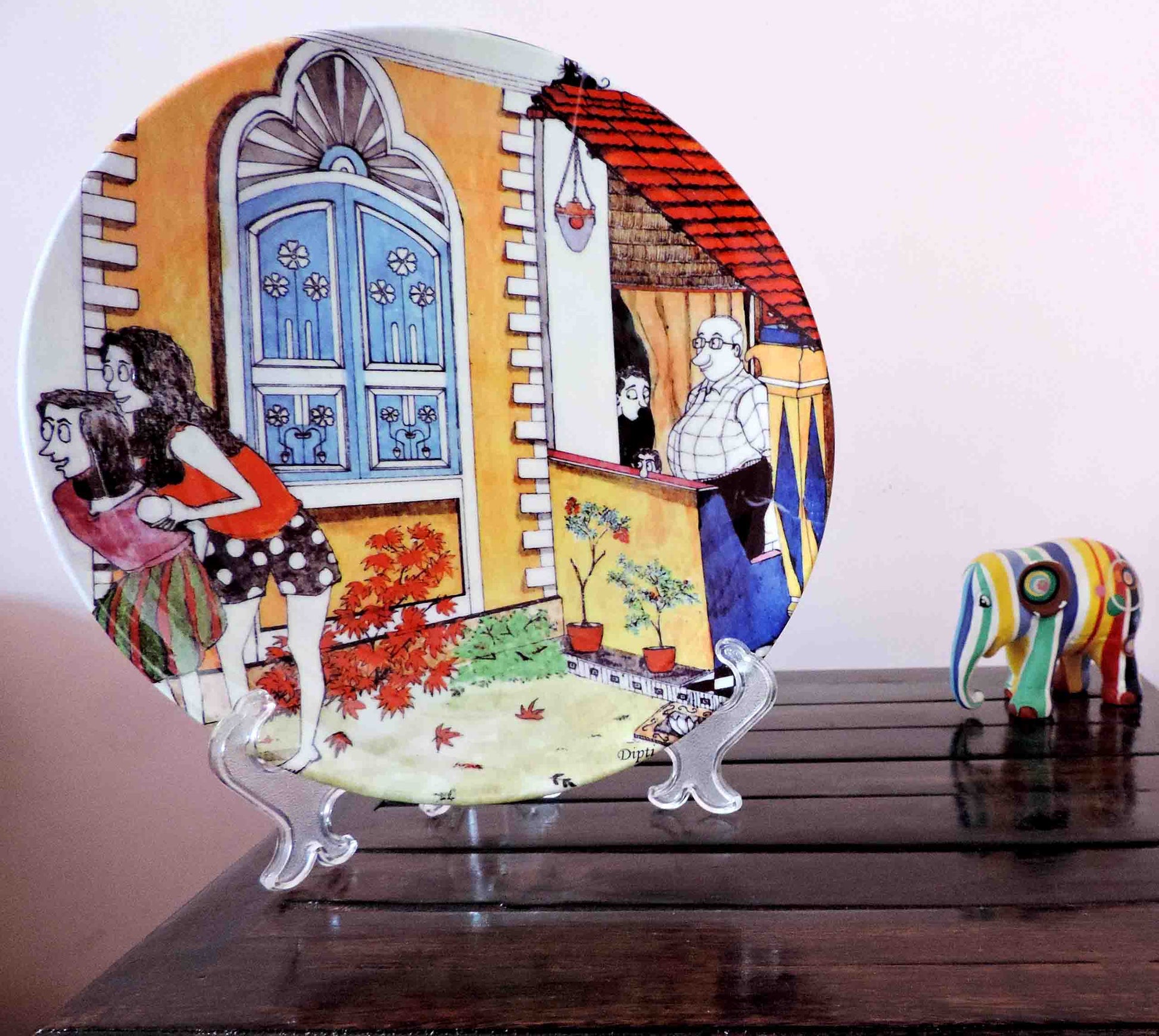 Style your interiors with this beautiful decorative plate, designed from unique original artwork. The plate comes with a stand for table décor, and a separate hanger for wall décor.