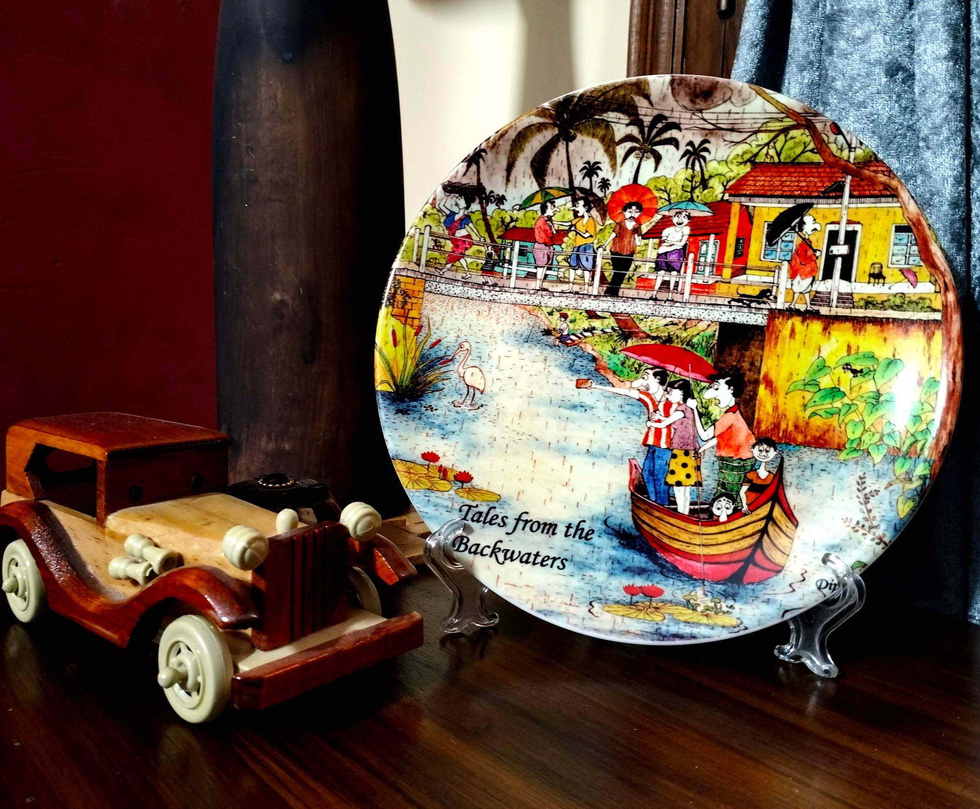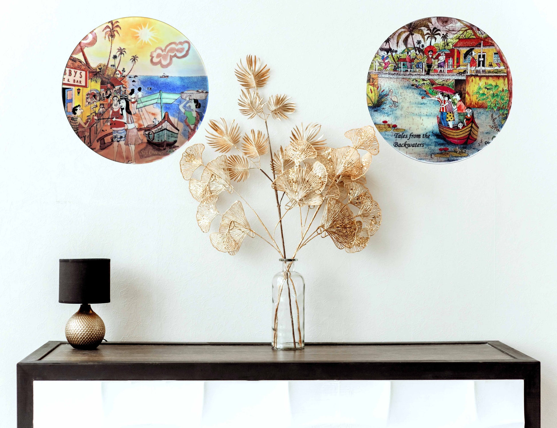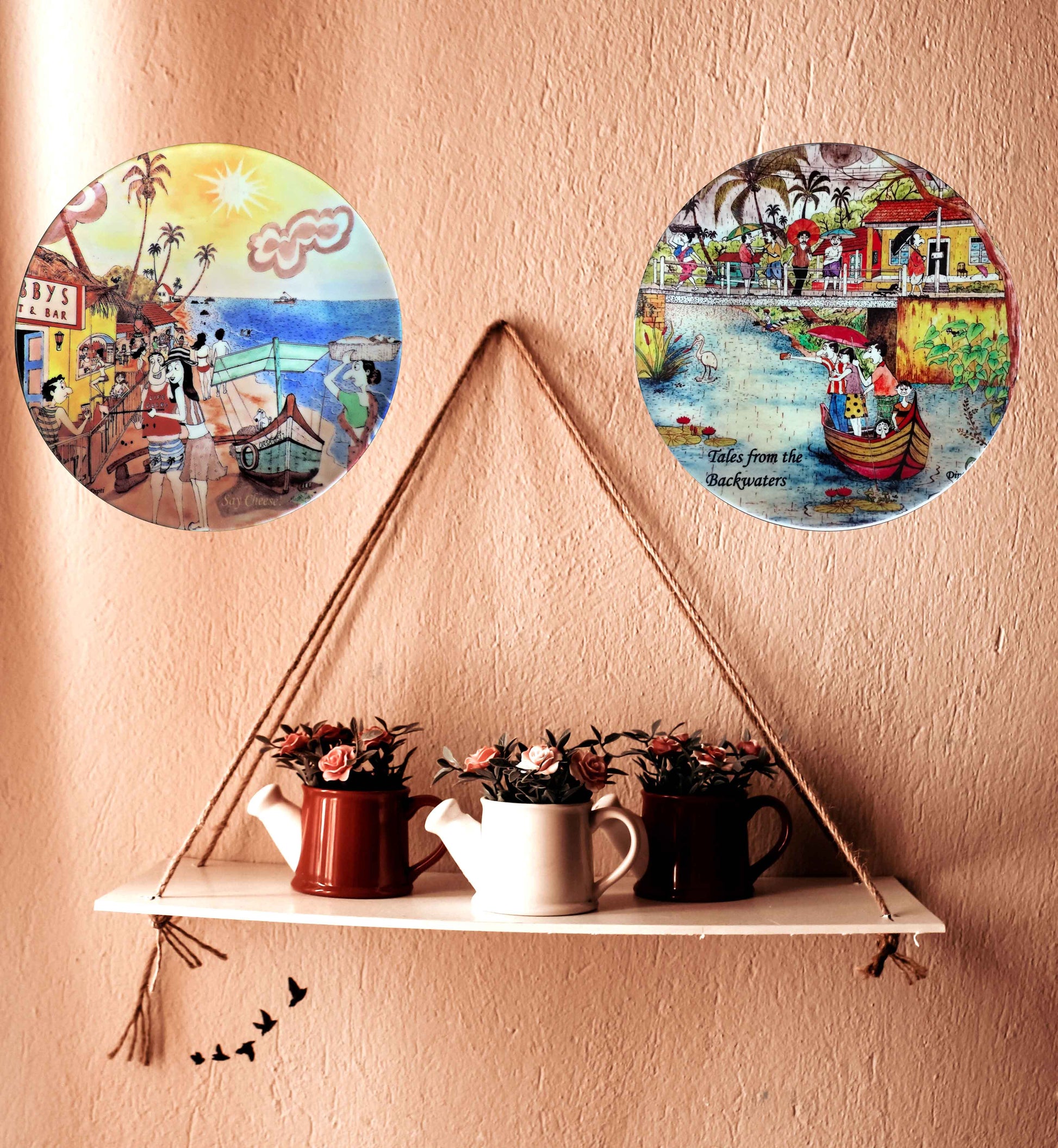 Style your interiors with this beautiful combo of decorative plates with print from unique original artwork. The plates come with wall hangers fixed to it.